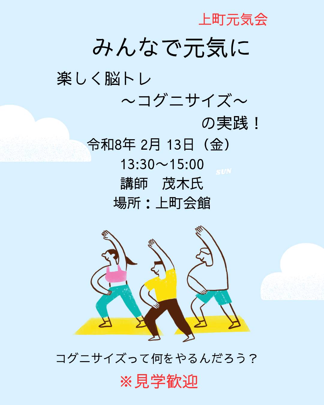 ◎ 2月13日13時30分より上町会館にて健康講座が開催されます。